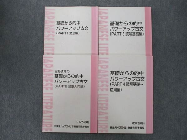 | VK25-096 東進 基礎からの的中パワーアップ古文 PART1〜4 文法編/読解入門編等 テキスト通年セット2008/2011 4冊 吉野敬介 27S0C |