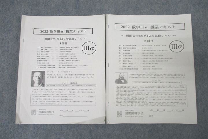 | WN26-021 湘南高校 2022 数学IIIα 難関大学(理系)2次試験レベル 1/2冊目 授業テキストセット 2023年3月卒業 11s0D |