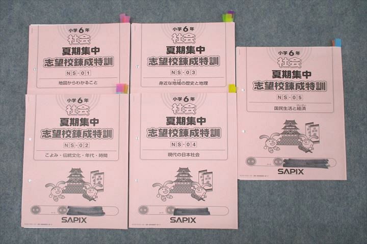 | WP27-096 SAPIX サピックス小学6年 社会 夏期集中志望校錬成特訓 NS-01〜05 計5回分セット 2020 16m2C |