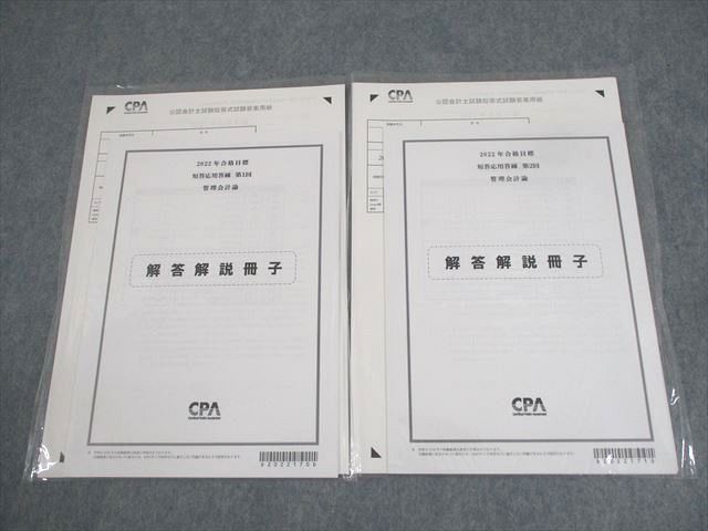 | WX10-059 CPA会計学院 公認会計士講座 短答応用答練 第1/2回 管理会計論 2022年合格目標 テスト計2回 未使用品 08s4B |