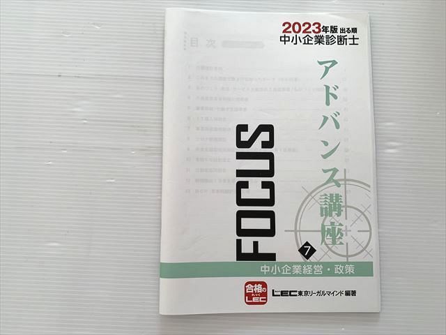 | XJ33-023 LEC 2023年版 出る順 中小企業診断士 アドバンス講座 7 中小企業経営・政策 ☆ 05S0B |