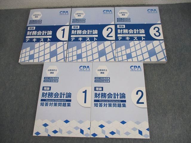 | XL10-032CPA会計学院 公認会計士講座 財務会計論 理論 テキスト1〜3/短答対策集1/2 2021/2022年合格目標 未使用品 計5冊 ☆ 96L4D |