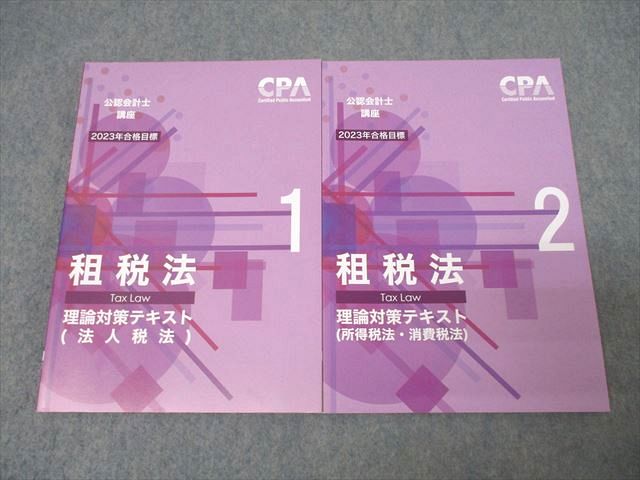 | XL25-071 CPA会計学院 公認会計士講座 租税法 法人/所得/消費税法 理論対策テキスト1/2 2023年合格目標セット 未使用 計2冊 ☆ 25S4D |