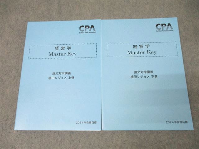 | XL26-030 CPA会計学院 公認会計士試験 経営学 Master Key 論文対策講義 植田レジュメ 上巻/下巻2024年合格目標 未使用 2冊 ☆ 33M4D |