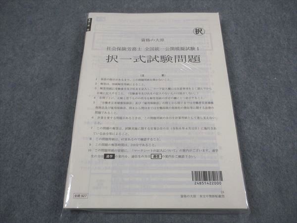 | XM04-035 資格の大原 社会保険労務士 全国統一公開模擬試験 択一式試験問題 2024年合格目標 未使用 未開封 ☆ 22S4D |