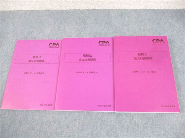 | XM12-010 CPA会計学院 公認会計士講座 租税法 論文対策講義 高野レジュメ 消費税法 等 2024年合格目標 状態良い 計3冊 ☆ 53R4D |