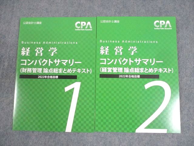 | XM12-014 CPA会計学院 公認会計士講座 経営学 論点総まとめテキスト1/2 2022年合格目標 未使用品 計2冊 ☆ 14s4D |