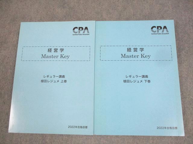| XM12-083 CPA会計学院 公認会計士講座 経営学 Master Key 植田レジュメ 上/下巻 2022年合格目標 未使用品 計2冊 ☆ 28M4C |