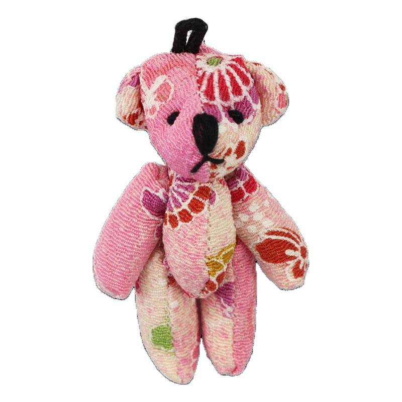 花柄くま 約6.5cm ちりめん生地 ぬいぐるみ 手芸 雑貨アクセサリー キーホルダー ストラップ