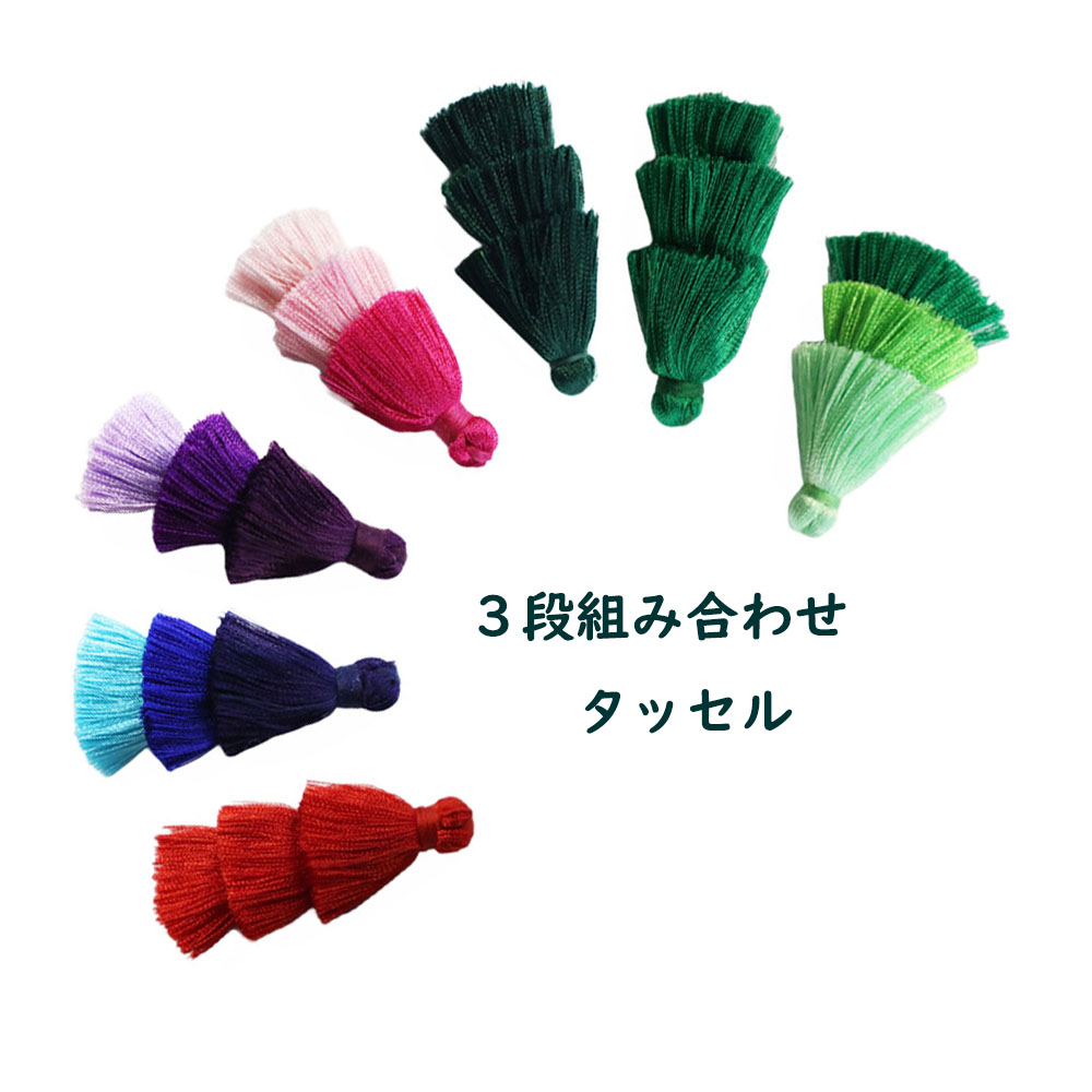 3段タッセル ふんわりボリューム(カンなし)1個売り ハンドメイド アクセサリー チャーム パーツ ピアスやストラップなどにもオススメです。