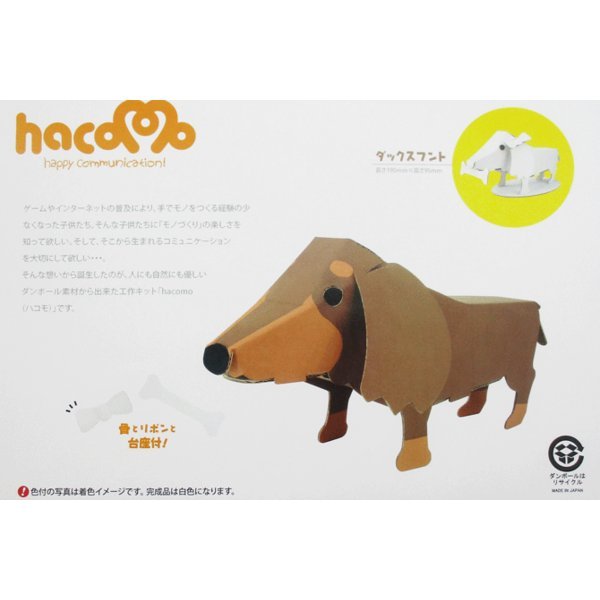 ハコモ hacomo ダックスフンド 【工作】【キット】【自由工作】【知育教材】親子で楽しく作れます。組み立てた後は絵の具やクレヨンなどで色付けして下さい