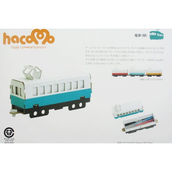 ハコモ hacomo 電車 緑 【工作】【キット】【自由工作】【知育教材】親子で楽しく作れます。組み立てた後は絵の具やクレヨンなどで色付けして下さい