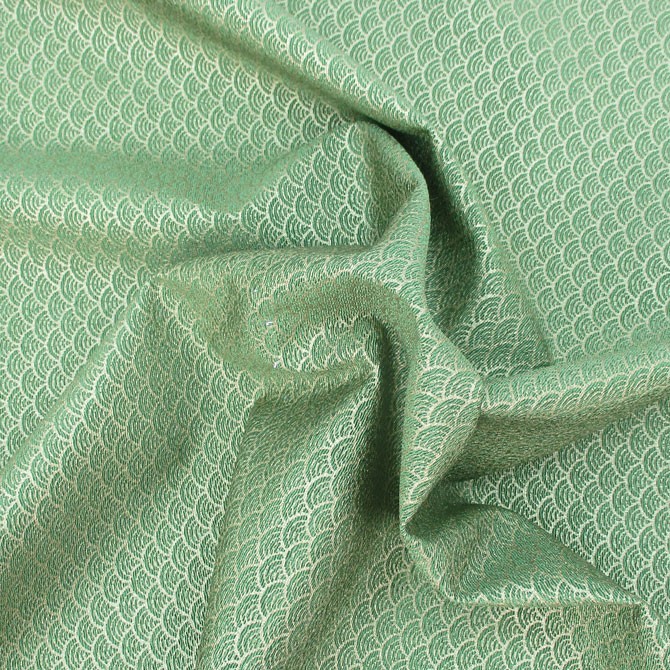 【5863】ちりめん 生地【青海波】【緑/金】友禅 疋田しぼり柄 巾約70cm【10cm単位で切り売り】