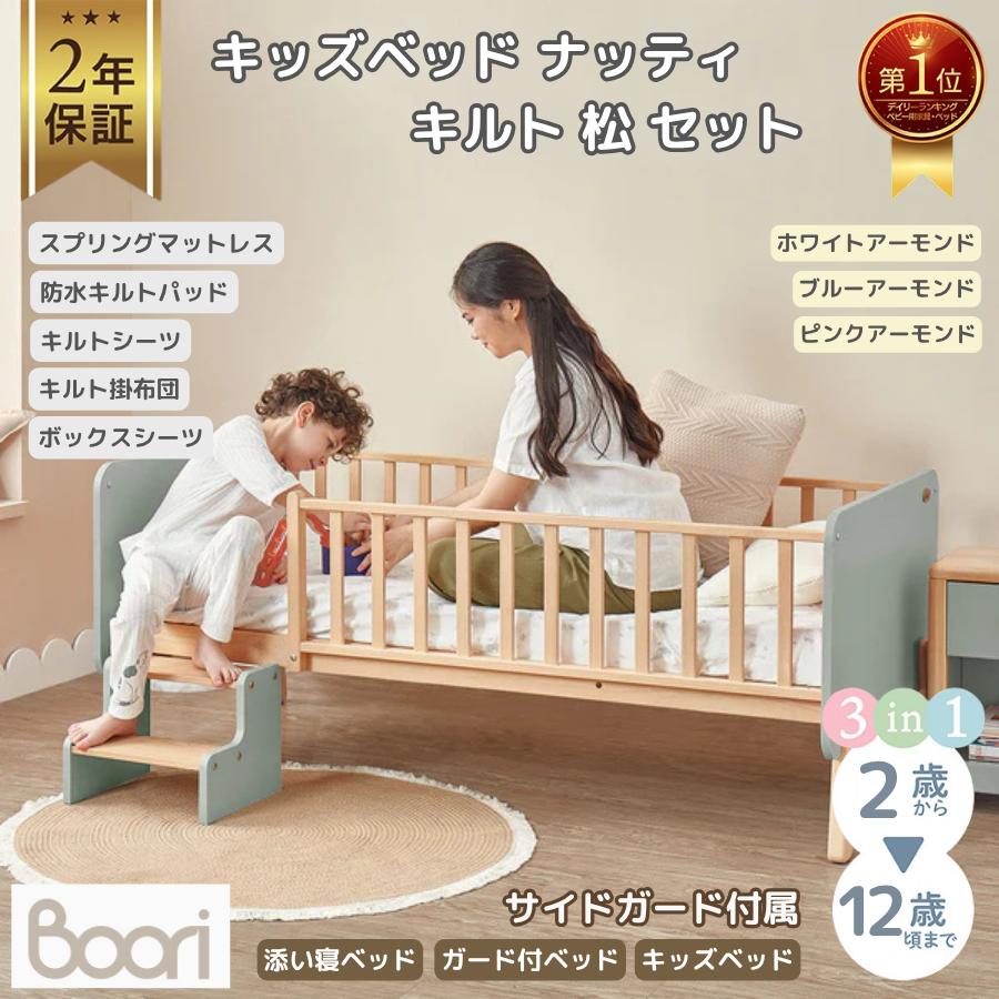 【特価17750円OFF】Boori キッズベッド ナッティ キルト 松 セット 2歳〜12歳までベッド ガード付き 2年保証 長く使える 子供用ベッド ブーリ BK-NABSB-MSET