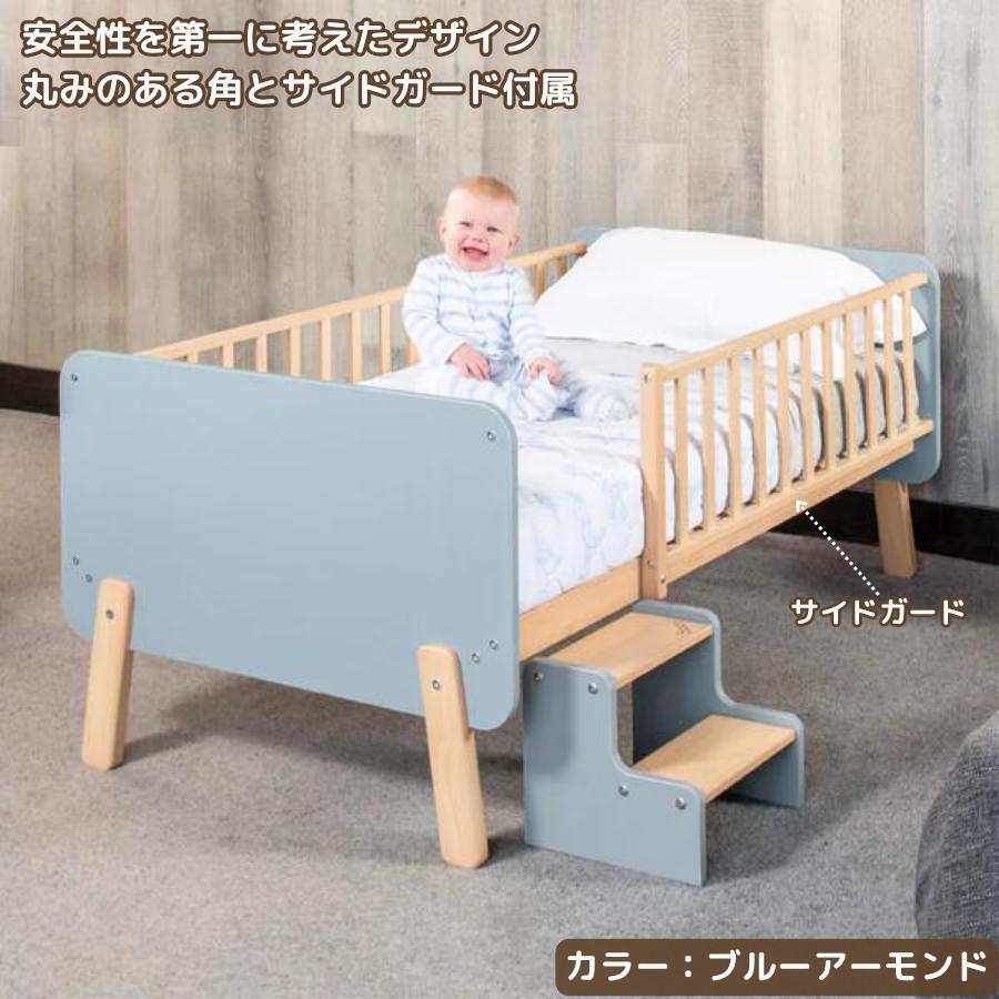 ベビーベッドから「大きなベッド」への移行は、幼児にとって重要な節目です。モダンなツートンカラーの