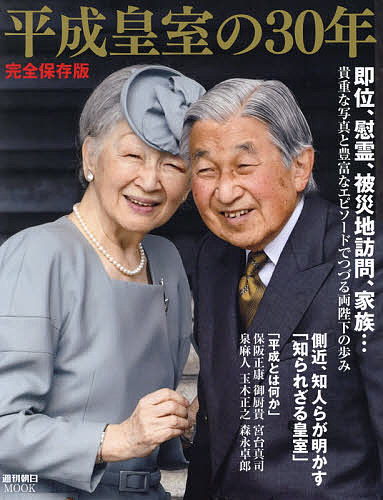 天皇・皇后両陛下の歩みとともに、平成の30年を振り返るムック本。太平洋戦争の慰霊の旅などを写真で振り返るグラビア、皇室一家の秘話などの特集、識者が語る「平成とは何か」の論考などを掲載。一家に一冊置きたくなる「保存版」の平成史。 ○平成皇室30年の軌跡のグラビア特集宮中行事、災害の被災地訪問、皇室一家のふれあい……とっておきの1枚、懐かしい1枚で垣間見る皇室の素顔 ○朝日新聞元皇室担当編集委員と識者による平成皇室対談 ○テニス派?スキー派? 皇室のスポーツ事情 ○皇室カメラマンが明かす秘話・お宝写真 ○あの時この場面、平成皇室を巡る証言集 ○パラオ、フィリピンなど天皇皇后の慰霊の旅 ○平成から新元号へ、これからの皇室のあり方は? ○著名人が徹底解説「平成とは何か」