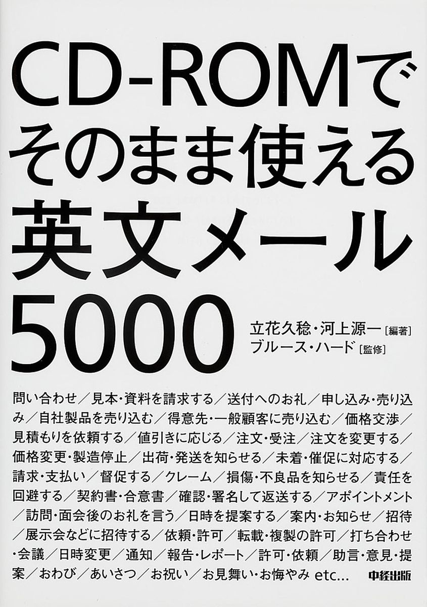 キーワード:CD−ROMでそのまま使える英文メール5000立花久稔河上源一ブルース・ハード しーでいーろむでそのままつかえるえいぶんめーる シーデイーロムデソノママツカエルエイブンメール たちばな ひさとし かわかみ タチバナ ヒサトシ カワカミ