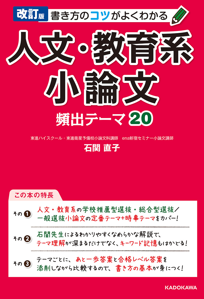 小論文対策の決定版「頻出テーマ」シリーズのうち、人文・教育系志望者にとっての必読書が、初の改訂で全面リニューアル。よく出る・今後も出続ける定番テーマだけでなく、「新型コロナウイルス感染症」や「ロシアのウクライナ侵攻」などこれから出まくるテーマまでしっかり反映。小論文指導の第一人者・石関先生による、わかりやすく歯切れよい解説で、知りたかったこと・知らなかったことがすべてわかる。イマイチ答案と合格答案の対比で、書き方の基本もバッチリ習得。学校推薦型選抜、総合型選抜だけでなく一般選抜にも対応。知識ナシ・準備ゼロの受験生でも途中でくじけず気軽に読めて、合格レベルに到達可能。