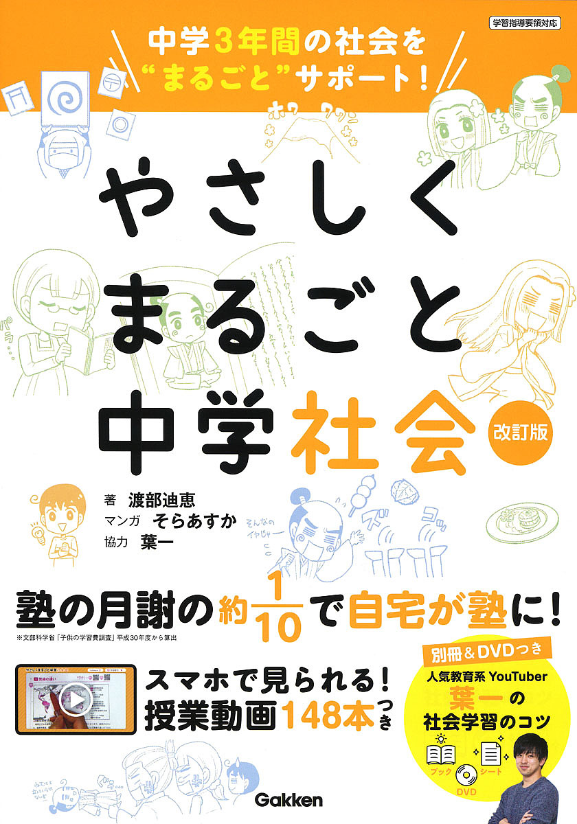 本書には人気教育系YouTuber葉一監修の社会の「学習のコツ」の解説と動画を収録、便利な勉強シートも付属した充実の別冊がついています。