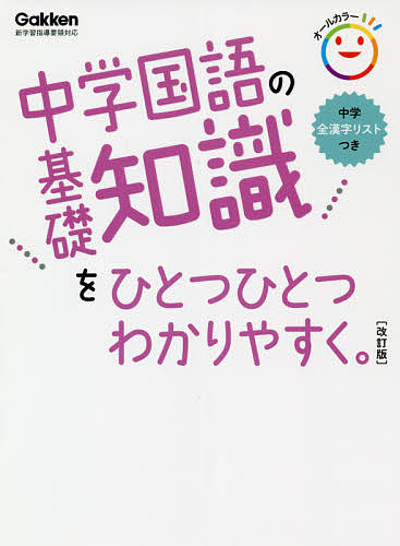 中学で学ぶ国語の基礎知識を、イラストや図解でやさしく解説。漢字・文法・読解・古典など、中学3年間で学ぶ内容を分野別に掲載しており、わからないところを調べるのに最適。テスト前の重要事項のチェック、暗記にも役立つ。赤フィルターつき。
