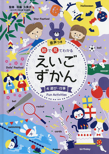 スポーツ、ゲーム、年中行事などの遊びや行事にまつわる英単語や会話フレーズを、場面別の楽しいイラストを見ながらどんどん覚えられる。音声つき、ダウンロードも対応。