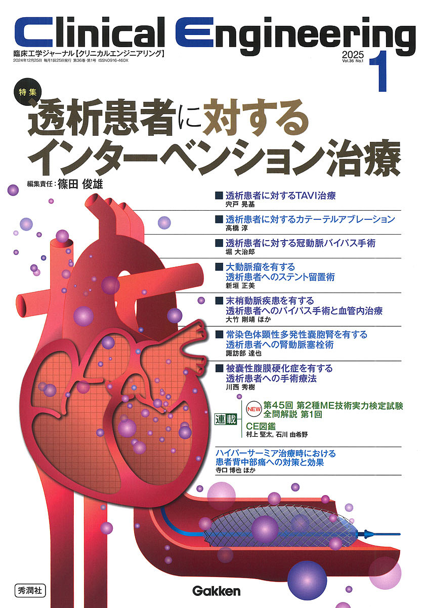 透析患者に施行されるインターベンション治療を広く解説。各治療における透析患者の特殊性や注意点、周術期の透析管理など、臨床工学技士が治療に関与する際に知っておくべきことや役割についての理解が深まる特集!