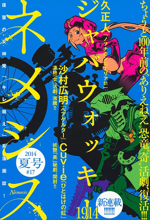 『ノブナガン』『エリア51』の久正人が描く『ジャバウォッキー1914』が表紙&ポスター付録にて新連載! 大越孝太郎のネオ西部劇『ゾーラ』の最新話も急遽掲載! 単行本大増刷のガチ怖ホラー『後遺症ラジオ』はショート連作4本掲載&カラー複製原画プレゼントもあり。『無限の住人』の沙村広明が描くずべ公アクション『ベアゲルター』、玉置勉強が描くケダモノラブコメディ『猫まち主従』も絶好調連載中。Cuvie、塩野干支郎次、すぎむらしんいち、『誘爆発作』『巨悪学園』など圧巻の連載陣がアナタの暑気を払いますっ!!