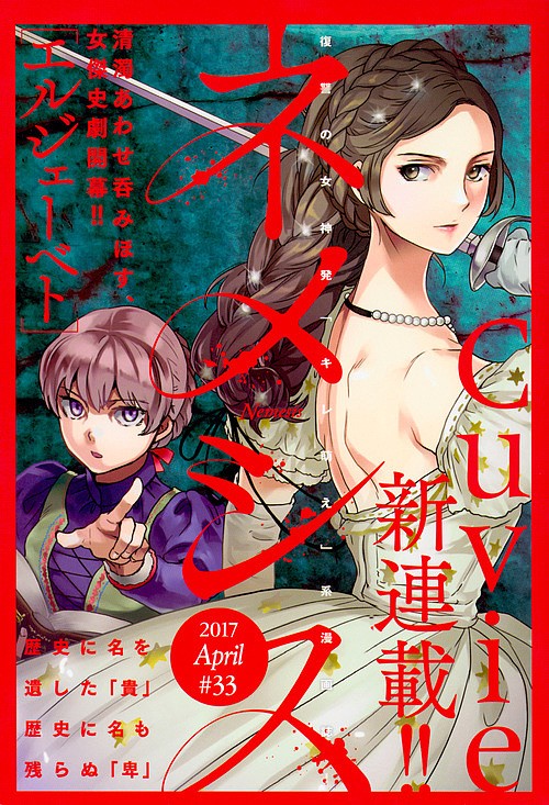 艶の絵師Cuvieの新連載『エルジェーベト』がネメシスに三たび降臨!!『籠女の邑』『ひとはけの虹』に続いて描くのは、美談と醜聞に彩られた皇妃。美麗なるポスターつきで表紙に登場。怖すぎるホラー『後遺症ラジオ』は大好評だった[実話版]の、さらに危険な“後日談”を掲載…。格闘世界大戦『ゴロセウム』は大増ページ継続中で一挙2話掲載。美少女搭乗ロボットSF『FIX YOU』は堂々完結。ほか沙村広明、久正人、塩野干支郎次、冲方丁&皆本形介らが連載中。濃すぎて評判の読者ページ「反響欄」は今号もガッツリ掲載!!