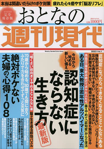 今や65歳以上の認知症患者は600万人以上、最後までボケずに健康寿命を延ばすにはどうしたらいいのか。そのためのヒントが満載。「最新の認知症予防法」や「ボケる前にしておくための準備」などを紹介する。