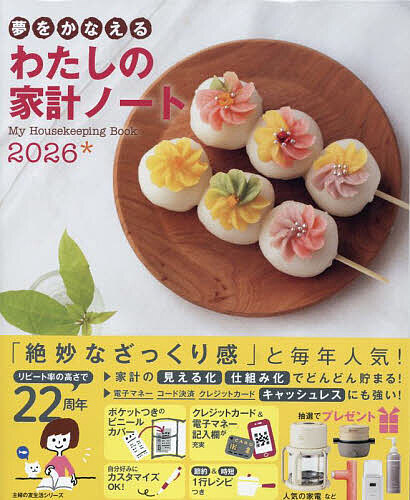 「絶妙なざっくり感がちょうどいい!」とリピート率の高さで22周年を迎えるロングセラー家計ノート。●自由度が高く、シンプルな記入でお金を「見える化」「仕組み化」でき、家計管理がラクラク。家計簿ビギナーにもぴったり。●毎日記録したい人には、日記も書ける欄が便利。時間がない人は月々のまとめページだけの記入でも家計の把握に。●キャッシュレスの記入欄も豊富で、電子マネーやカードなどのお金も把握しやすく、うっかり使いすぎを抑える助けにも。●ポケットつきのビニールカバーや、カスタマイズできるインデックス、しおりなども付いていて、自分仕様に変えられるのもうれしい。●ファイナンシャルプランナーによる最新情報で2026年のマネーポイントを押さえられる。●自分や家族の夢に向け、いつ・いくら必要なのかわかるプラン表も。円安や物価高、金利上昇から家計を守り、しっかり将来に備え、「夢をかなえる」ための家計ノートです。