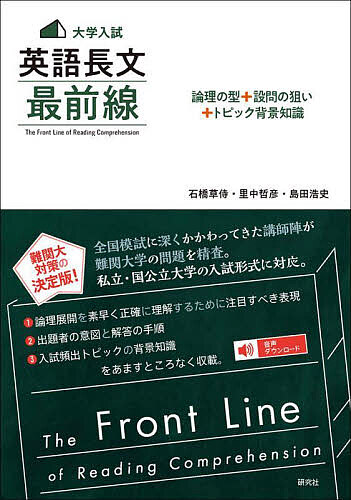 全国模試に深くかかわってきた予備校講師陣が難関大学の入試問題を精査し、実際の出題文を使って、高得点を狙うために必要なレベルの問題(全12講)を独自に作成。「論理の型」「設問の狙い」「トピック背景知識」で、論理展開を意識した英文の読み方、出題者の意図を踏まえた解法、入試頻出テーマの背景知識と英語表現、を身につけられます。