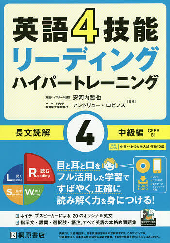 キーワード:英語4技能リーディングハイパートレーニング長文読解4安河内哲也アンドリュー・ロビンス えいごよんぎのうりーでいんぐはいぱーとれーにんぐち エイゴヨンギノウリーデイングハイパートレーニングチ やすこうち てつや ろびんす ヤスコウチ テツヤ ロビンス