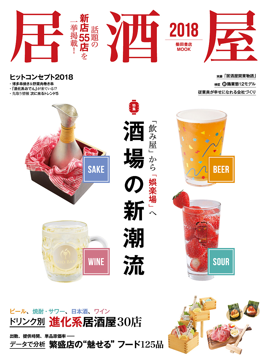 特集:ドリンク&フードのトレンドから探る 酒場の新潮流 「居酒屋」の多様化が進み、年配男性だけでなく、女性や若者が気兼ねなく訪れて、色とりどりの多彩なドリンクを飲みながら、「インスタ映え」する料理を味わう風景が珍しくありません。こうした居酒屋の変化を支えているのが、日々進化を続ける商品のクオリティです。 今号では、繁盛居酒屋をつうじて「ドリンク」と「フード」のトレンドを徹底分析。いま、売れている居酒屋とはどんな店なのかを探ります。
