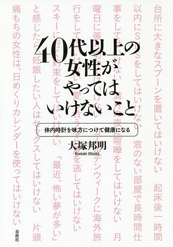 キーワード:40代以上の女性がやってはいけないこと体内時計を味方につけて健康になる大塚邦明 よんじゆうだいいじようのじよせいがやつてわいけない ヨンジユウダイイジヨウノジヨセイガヤツテワイケナイ おおつか くにあき オオツカ クニアキ