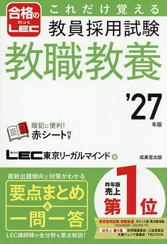 キーワード:これだけ覚える教員採用試験教職教養’27年版LEC東京リーガルマインド これだけおぼえるきよういんさいようしけんきようしよ コレダケオボエルキヨウインサイヨウシケンキヨウシヨ とうきよう/り−がる/まいんど トウキヨウ/リ−ガル/マインド