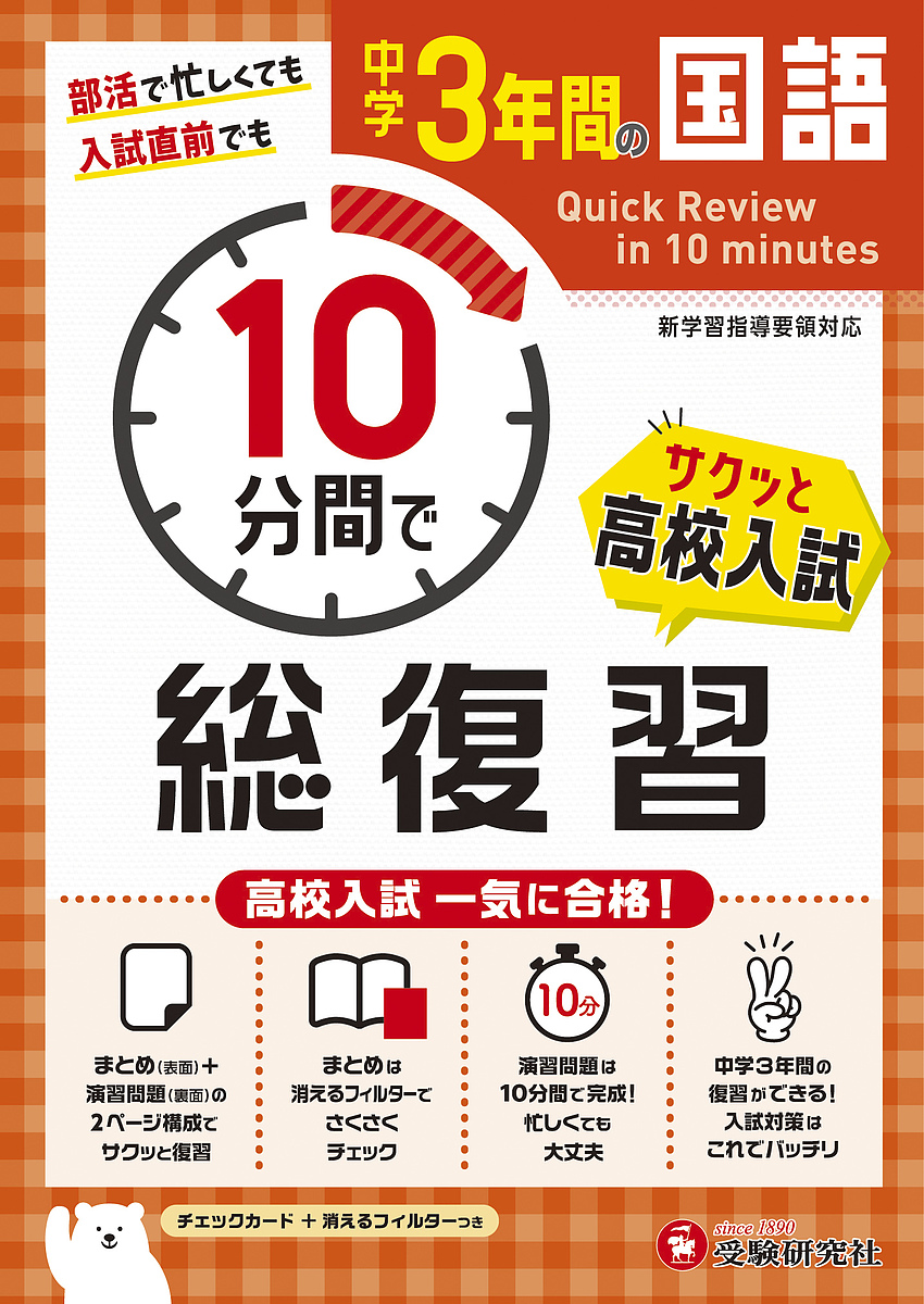 表面のまとめページでは重要事項や問題の解き方を,裏面の問題ページでは表面に対応した演習問題を掲載。試験時間が 10 分なので,サクッと復習できます。