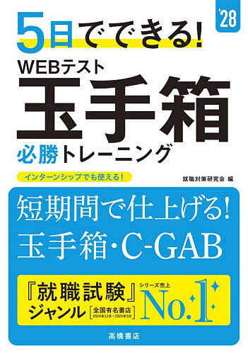 キーワード:5日でできる!WEBテスト玉手箱必勝トレーニング’28年度版就職対策研究会 いつかでできるうえぶてすとたまてばこひつしよう イツカデデキルウエブテストタマテバコヒツシヨウ しゆうしよく/たいさく/けんき シユウシヨク/タイサク/ケンキ