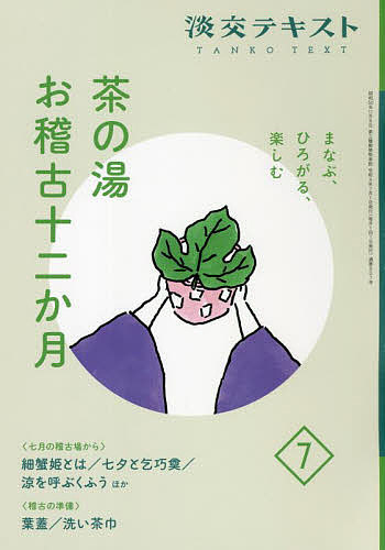 2022年の淡交テキストは毎月の稽古場で出会うモノ、コトから、茶の湯のまなびや楽しみをひろげるシリーズです。《7月の稽古場から》《稽古の準備》では、稽古場風景と「葉蓋・洗い茶巾」の準備を取り上げた上で、それらに関連する「細蟹姫とは・七夕と乞巧奠・涼を呼ぶくふう・葉蓋に適した葉と水指・玄々斎と葉蓋・馬盥と平茶碗・奈良晒とは・茶巾と茶人」について、Q&Aなどで楽しく掘り下げます。その他、当月に活躍する意匠の《7月に活躍する茶道具》や、茶人の日常によく起こる出来事を描く4コママンガ《茶人あるある》、また歌舞伎役者片岡亀蔵夫人・片岡明美氏による暮らしの中の茶の湯エッセイ《まずは一服》「七夕の硯洗い」をまじえ、稽古の一助となる充実の内容でお届けします。