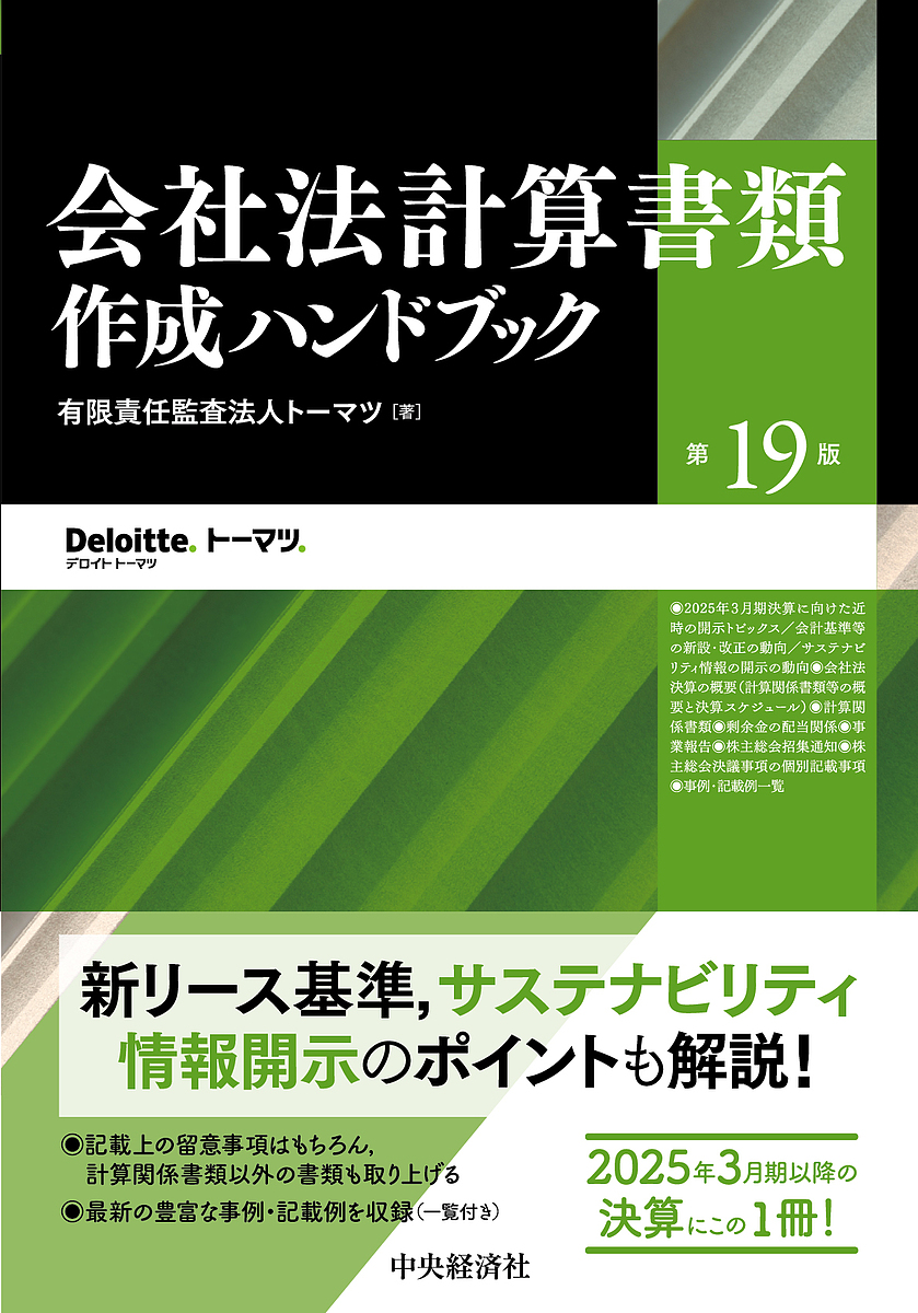 本書は、会社法の下での計算関係書類等の概要、決算スケジュールをはじめ、計算書類(貸借対照表、損益計算書、株主資本等変動計算書および個別注記表)、計算書類に係る附属明細書、連結計算書類(連結貸借対照表、連結損益計算書、連結株主資本等変動計算書および連結注記表)、臨時計算書類、監査報告書等についての解説を行っています。また、実務の参考となるように、実際の記載事例を多数示しています。第19版では、2025年3月期以降の決算における開示トピックスをフィーチャーした第1章で、「新しい会計基準等の適用開始時期一覧」「近年の会計基準等の主な新設・改正状況」をまとめるとともに、2027年4月開始年度から適用される新リース基準の概要、および昨今重要性が増しているサステナビリティ情報に関する開示のポイントを解説しています。また、記載事例はできる限り最新のものに更新し、付録として事例・記載例一覧を掲載しています。