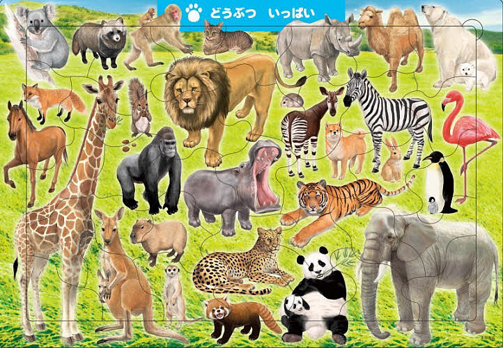 パンダ、ぞう、ライオンなど、動物園で大人気のどうぶつを集めたジグソーパズルです。