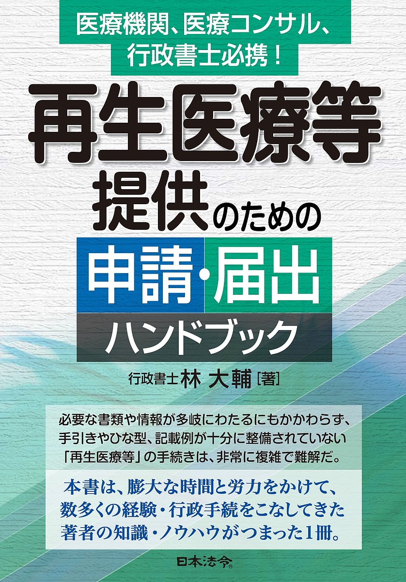 キーワード:再生医療等提供のための申請・届出ハンドブック医療機関、医療コンサル、行政書士必携!林大輔 さいせいいりようとうていきようのための サイセイイリヨウトウテイキヨウノタメノ はやし だいすけ ハヤシ ダイスケ