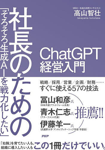 キーワード:「そろそろ生成AIを戦力化したい」社長のためのChatGPT経営入門高山智壮 そろそろせいせいえーあいおせんりよくかしたいしやち ソロソロセイセイエーアイオセンリヨクカシタイシヤチ たかやま ともたけ タカヤマ トモタケ