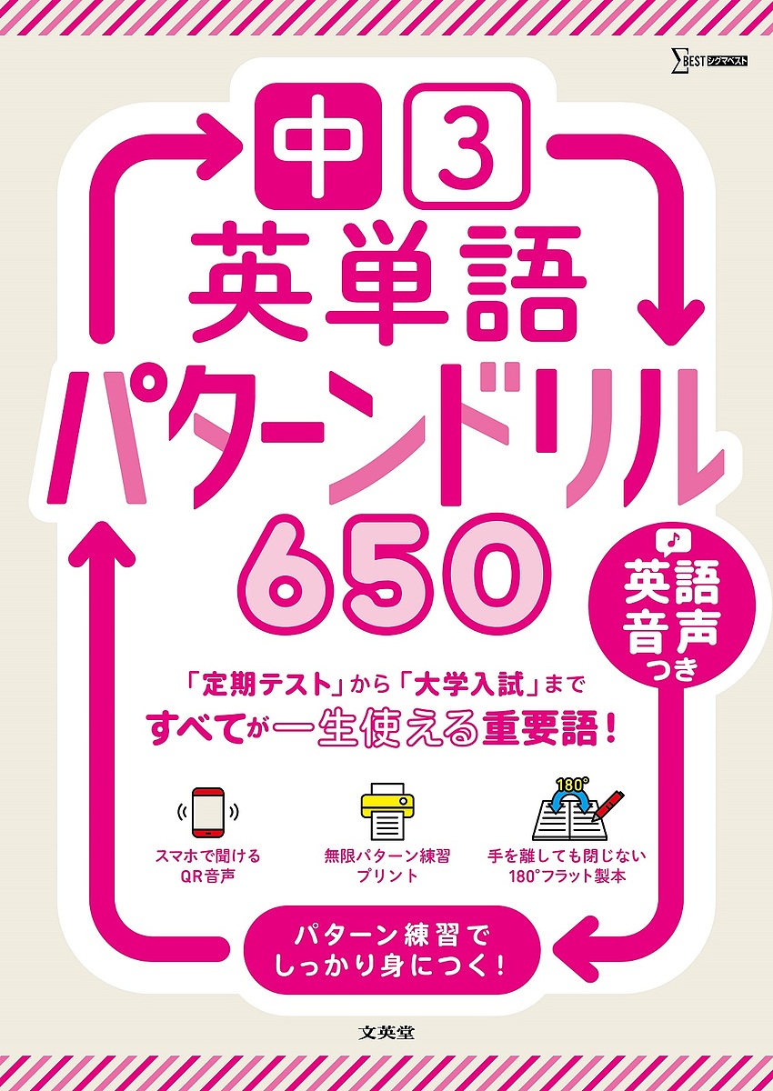 中学3年生で習う英単語を品詞・テーマごとに分類。一気にまとめて覚えやすく、記憶にも残りやすい配列です。