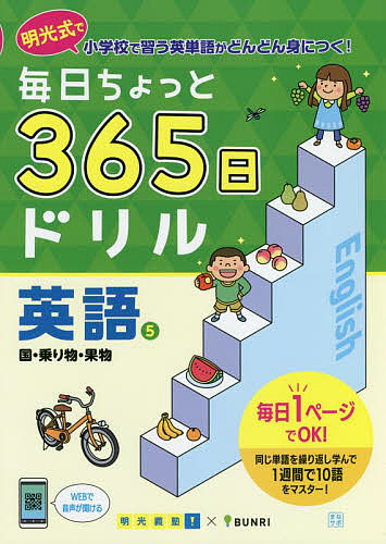 明光義塾×文理のコラボ教材<<毎日「ちょっと」を大切に。明光義塾の『英単語暗記法』で英単語をカンペキにしよう!「自分が苦手だから、子どもには英語を好きになってほしい…」「英語が大切になるとは聞いているけど、何をしてあげたらいいのか正直わからない…」そんな悩みを解決します!【この本の特長】★1日1ページ10分だけ!1週間で10単語を定着させます。★全単語にイラストが付いているので、単語のイメージがしっかり頭に入ります。★全単語に音声が付いているので、正しい発音やリスニング力も身につきます。★毎日ちょっとずつ進める教材なので、机に向かう習慣が身につきます。★シリーズ6冊で、小学校で学ぶ700語を習得できます。全6冊のシリーズ構成です。興味のある分野からスタートしましょう!(1)日付・教科・職業 (2)数・動物・家族 (3)建物・食べ物・からだ(4)行事・スポーツ・文房具 (5)国・乗り物・果物 (6)動作・状態・その他
