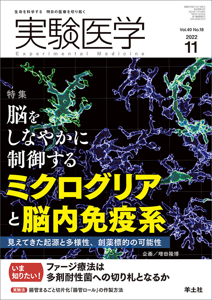 脳内の主要免疫細胞であるミクログリア.1細胞解析等により,脳発生から病態形成にまで寄与する多彩な機能や動態がみえてきた!他の脳内免疫細胞との関与も/薬剤耐性菌や病原細菌の殺菌に有望視されるファージ療法
