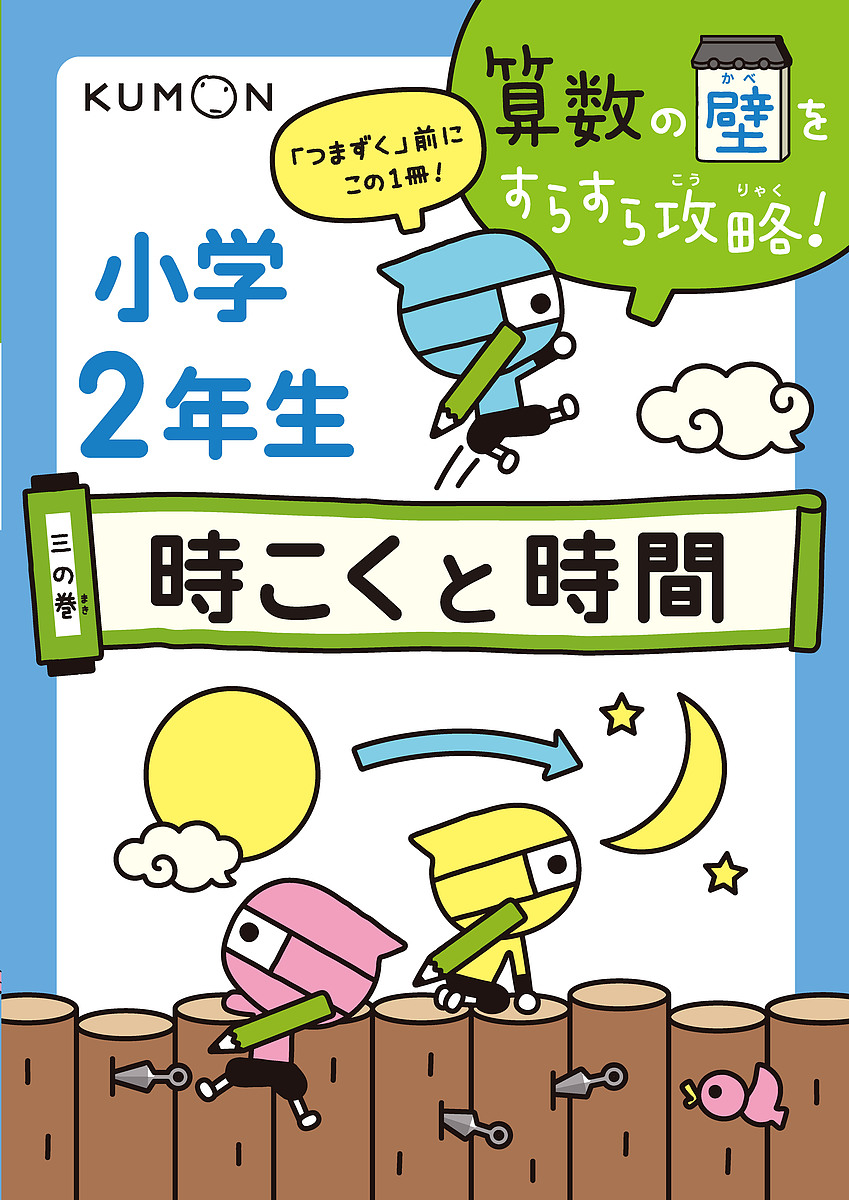 この本では小学2年生の算数の壁、時こくと時間を楽しくしっかり攻略します!時刻と時刻の間=「時間」を求める学習から、「午前」と「午後」を使い分けて時刻をよみ、時間を求めます。文章題も学習します。