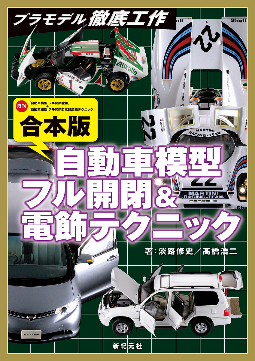 ヘッドライトやテールランプを光らせたい! 世界に一台だけの自動車模型にするためのテクニックが満載の本『自動車模型 フル開閉化編』(2013年)と『自動車模型 フル開閉&電飾 超絶テクニック』(2016年)がまとまって一冊の本になりました!