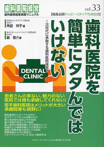 キーワード:歯科医院を簡単にタタんではいけない次世代に承継する歯科医院経営角田祥子嶋敬介 しかいいんおかんたんにたたんでわ シカイインオカンタンニタタンデワ すみた よしこ しま けいすけ スミタ ヨシコ シマ ケイスケ