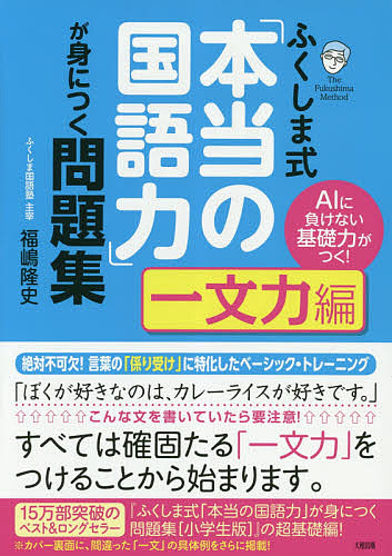 キーワード:ふくしま式「本当の国語力」が身につく問題集AIに負けない基礎力がつく!一文力編福嶋隆史 ふくしましきほんとうのこくごりよくがみに フクシマシキホントウノコクゴリヨクガミニ ふくしま たかし フクシマ タカシ