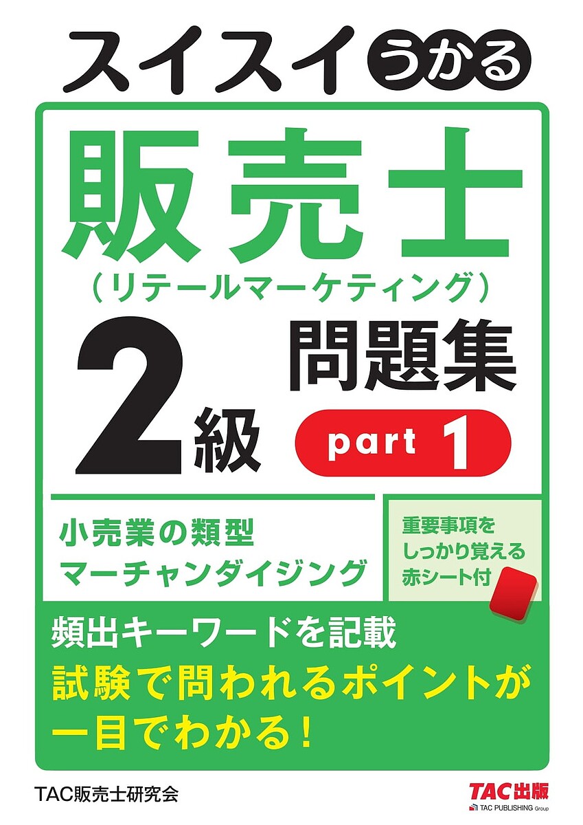 キーワード:スイスイうかる販売士〈リテールマーケティング〉2級問題集part1中谷安伸TAC販売士研究会 ビジネス書 資格 試験 すいすいうかるはんばいしりてーるまーけていんぐにき スイスイウカルハンバイシリテールマーケテイングニキ なかや やすのぶ たつく/しゆ ナカヤ ヤスノブ タツク/シユ